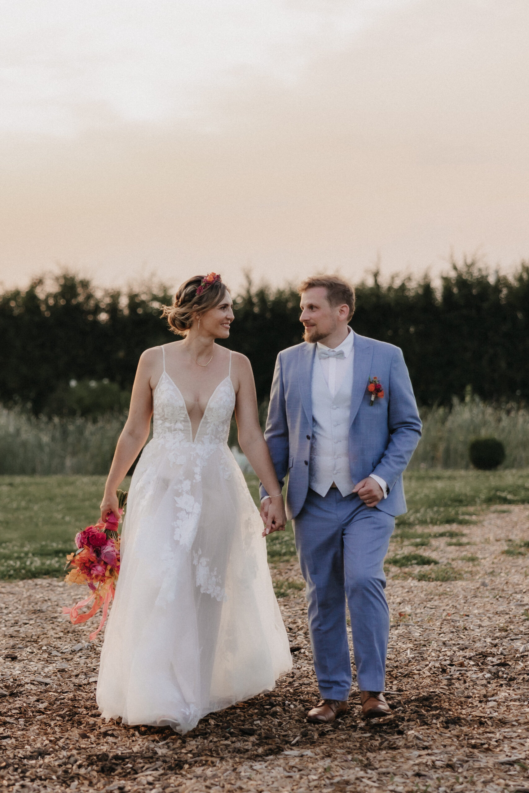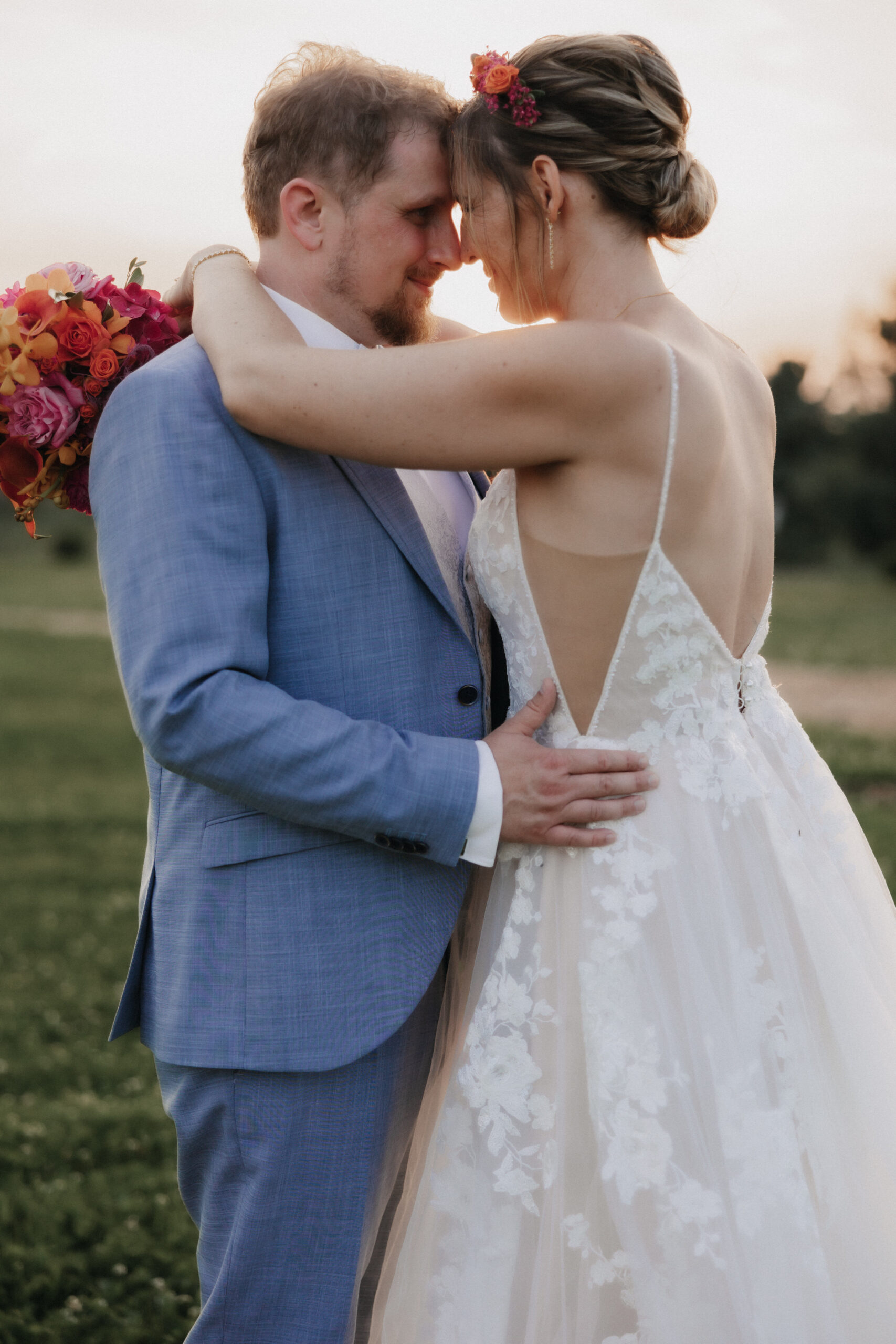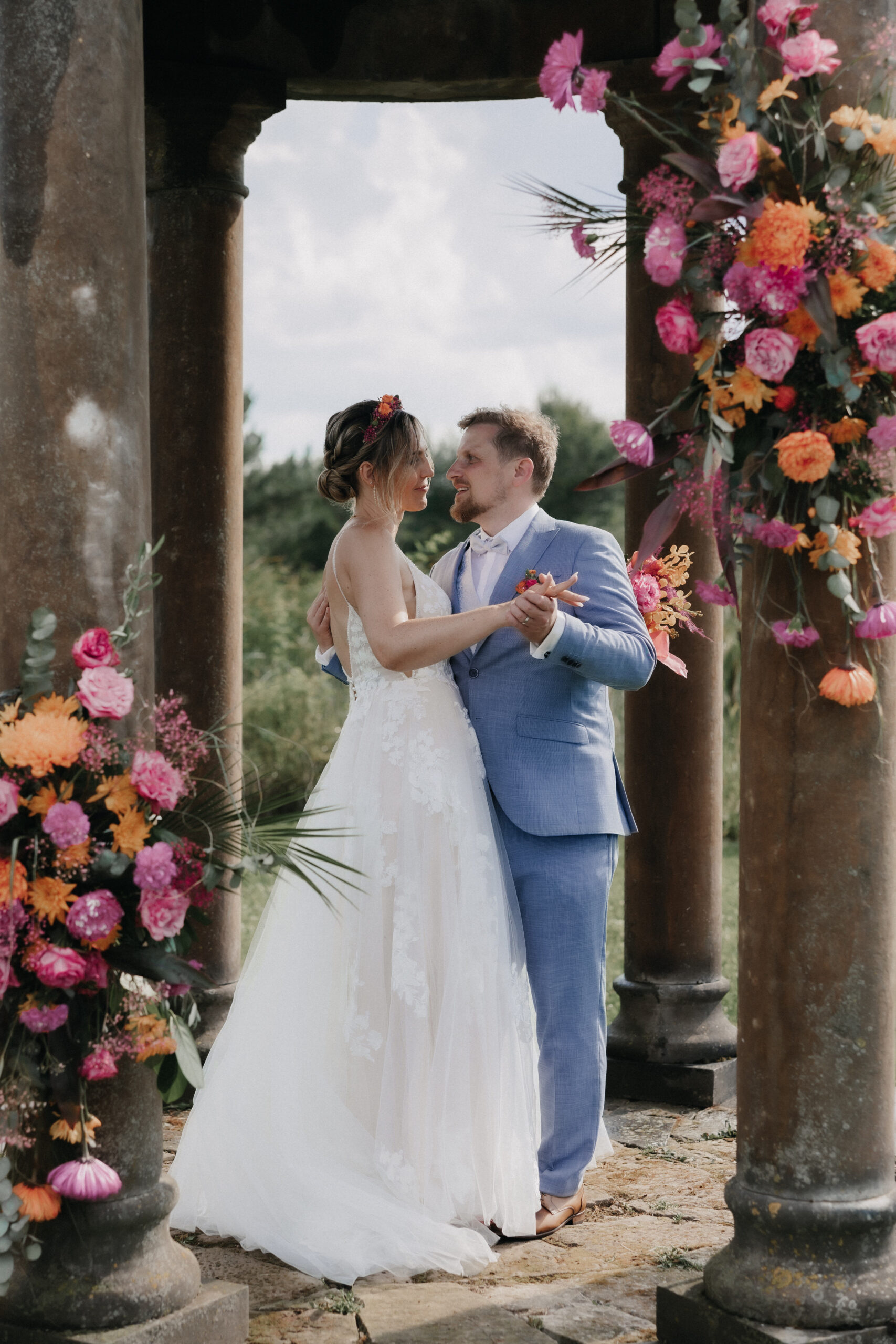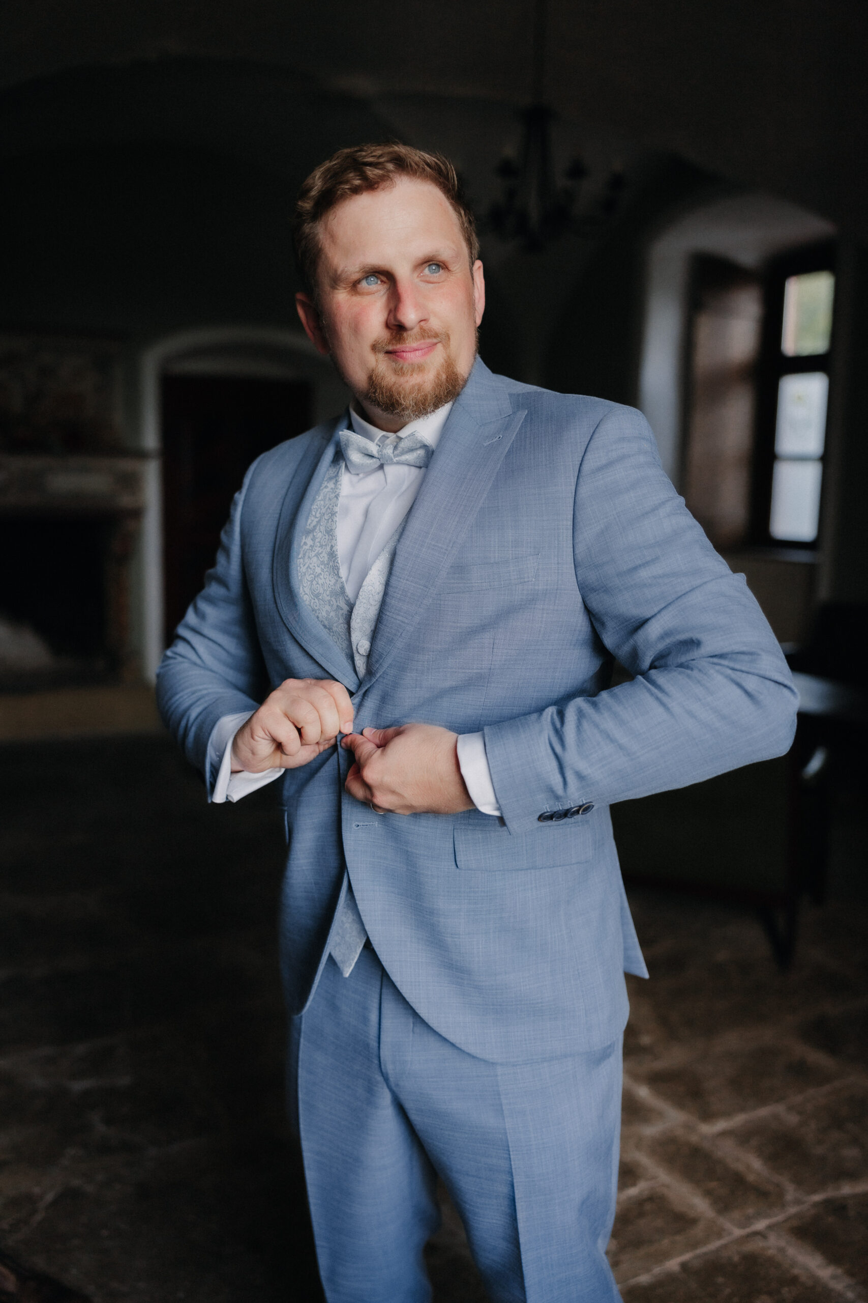 Die Braut trug ein traumhaftes Kleid von OhYes Bridal – modern, elegant und gleichzeitig wunderbar individuell. Das fließende Design und die feinen Stoffe passten perfekt zu ihrer Persönlichkeit und verliehen ihr einen Hauch von Märchenhaftigkeit, der im Zusammenspiel mit der Schlosskulisse einfach magisch wirkte.