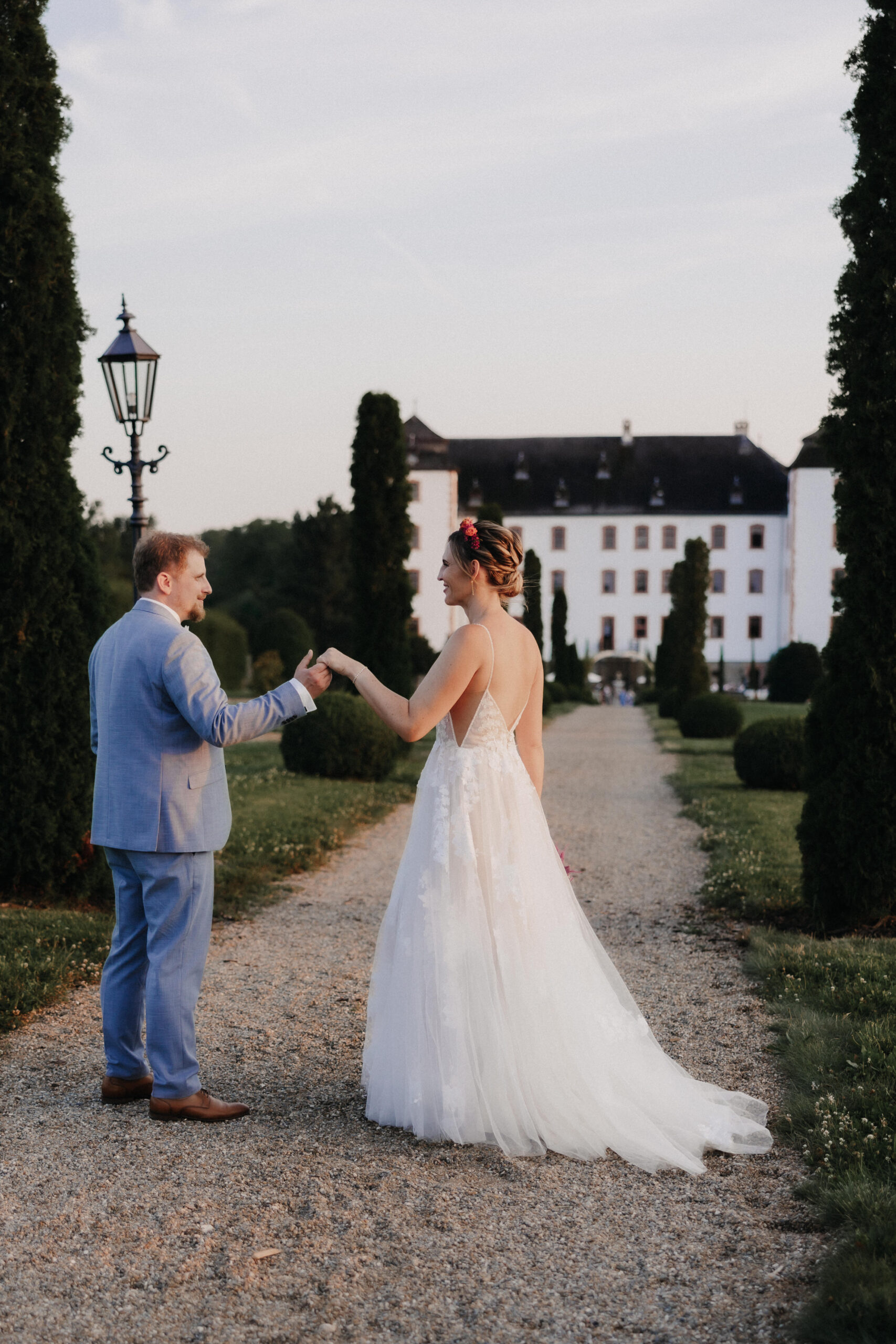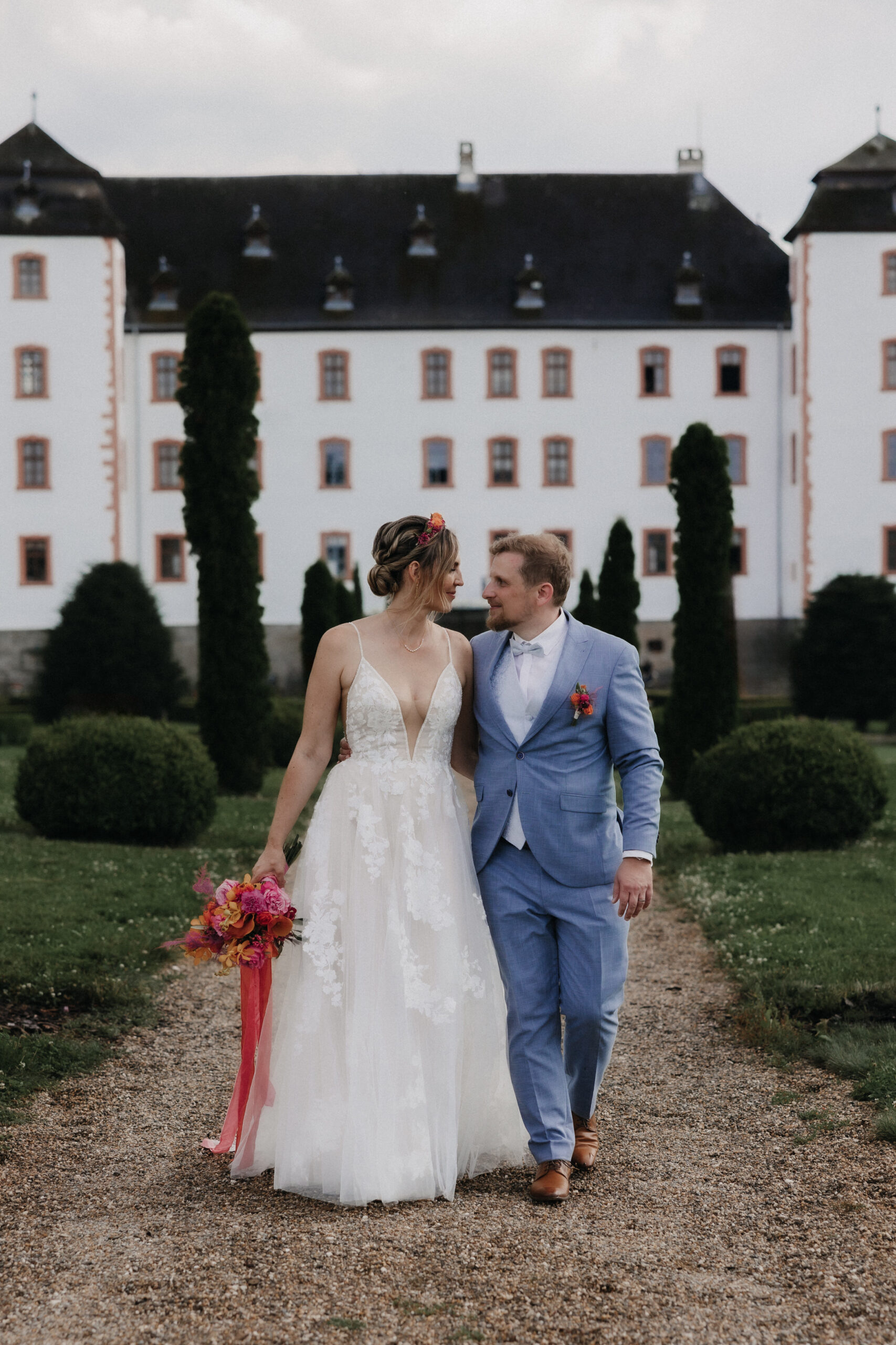 Das historische Schloss mit seinem eleganten Innenhof, der weitläufigen Parkanlage und den charmanten Details strahlte eine ganz besondere Atmosphäre aus. Von der Vorbereitung bis zum letzten Tanz war dieser Tag geprägt von Freude, Herzlichkeit und vielen kleinen Augenblicken, die ihn unvergesslich machten.